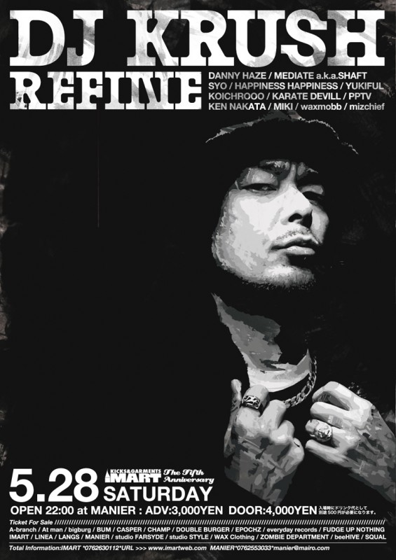 ADVTICKET ¥3000- / DAY ¥4000- (入場時別途¥500-DRINK代として必要です。)