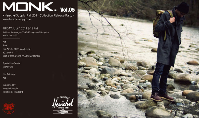 7月1日よりスタートする【Herschel Supply Fall 2011 Collection】の発売に際して、Fall 2011 Collectionのリリースパーティーが、原宿UC通例のイベント【MONK.】とのコラボレーションで開催されます。