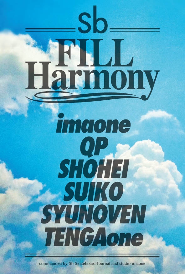 7月21日(sat)にリリースのスケートボードマガジンSbの新刊”skateboard photogenic”。その余韻をジャックするかのように、Sbのホームページでは”FILL”HARMONYが展開。昨年7月、24時間限定でアップされたアーティスト展(Sbホームページ上)の第二弾になる今回はimaone、QP、SHOHEI、SUIKO、SYUNOVEN、TENGAoneの6人のアーティストによる5日間に及ぶSb Webの壁ジャック。コンテンツのすべてを埋め尽くす、まさに”FILL”な個性と個性がぶつかるハーモニーをぜひご覧下さい。http://www.sbskateboardjournal.com/