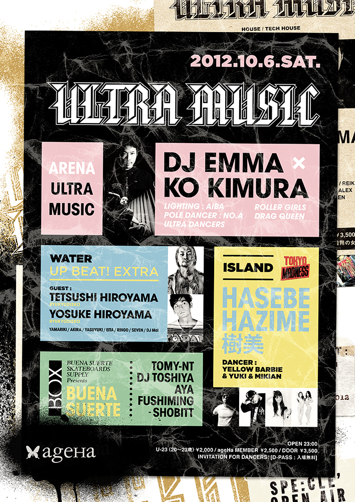 U-23 (20~23歳) ¥2,000 / ageHa MEMBER ¥2,500 / DOOR ¥3,500