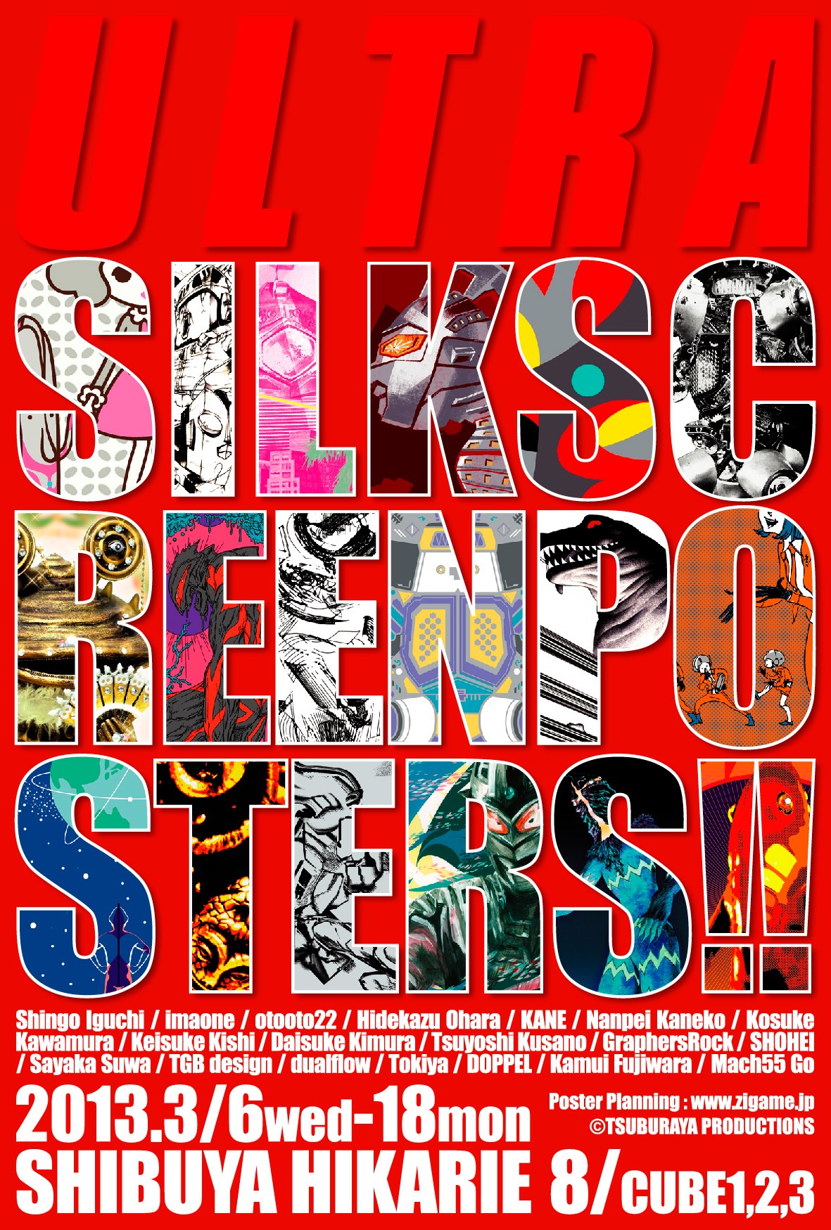 本展覧会は、国内外で活躍する19名のアーティストが“アート”のフィルターを通し、独自のイマジネーションでウルトラの世界にオマージュを捧げた作品をシルクスクリーン・ポスターとして展示・販売します。