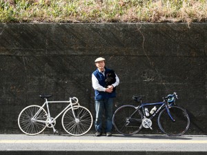 T 違うよっ!え~?、三角乗り知らない?そっか、50年くらい前には今みたいな子供用自転車ってそんなに無かったの。みんな大きいからサドルに座れなくて、フレームの三角になった所に足通して乗るんだよ。それを三角乗りっていうんだよ。んで、三角乗りで乗ってたら、8歳くらいの時におじさんがオンボロの子供用自転車持ってて、それを修理してくれて乗るようになったんだよな。それがちゃんと自転車に乗るキッカケだったな~。それからもうずっと乗ってますな~。
