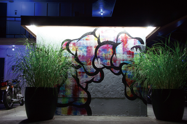M 僕の場合は仕事としてのみ描いてます。例えばアメリカの”Jupiter Hotel”ってブティックホテルの場合は外壁なんですけど、建物で囲まれた中心部分へのペイントだったから、自分の中で”Jupiter=宇宙”っていうテーマを決めて、その空間の中で自分流の宇宙を表現した作品を制作したんです。