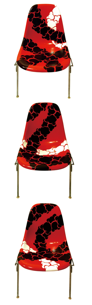 M あの時は僕がどうしてもイームズのカスタムがやりたかったんで、事前にギャラリーのオーナーに何脚か用意してもらったんです。それが状態も完璧なイームズのサイドシェル。お陰様であの作品は展示前日のプレヴューで1setに対して複数のオーダーをもらえたんです。