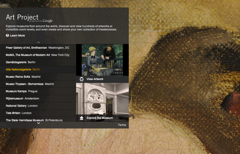 GoogleMapに付随する「ストリートビュー」の技術を応用し、世界の著名な17の美術館の内部とそこに展示されている絵画を鑑賞できるというサービス。