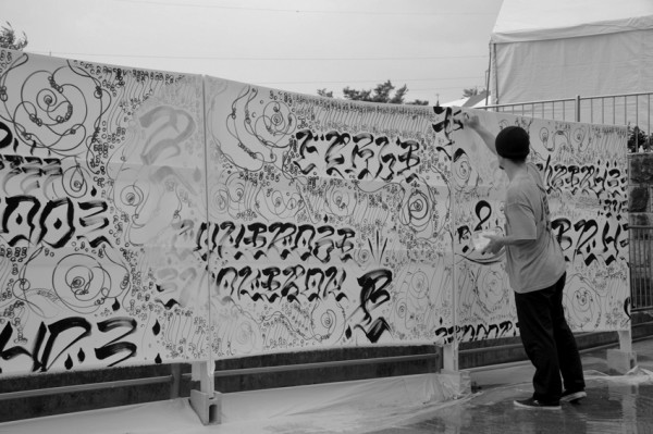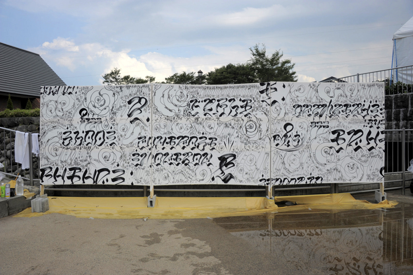 2011.8月15日、四季の里/福島にてSYUNOVENとUSUGROWの二人からなるユニット【LUVVINE】のライブペイントが行われ、その様子がアップされています。