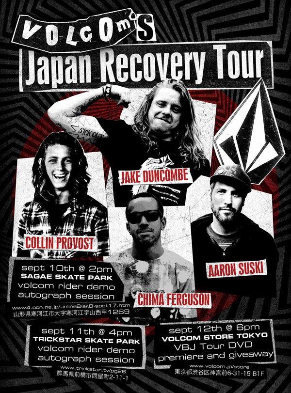 明日9月10日、14時より山形県の寒河江スケートパークにて VOLCOM japan Recovery Tour が行われます。 当日会場は FREE BEER & BBQ となっているようなのでお時間ある方は是非!