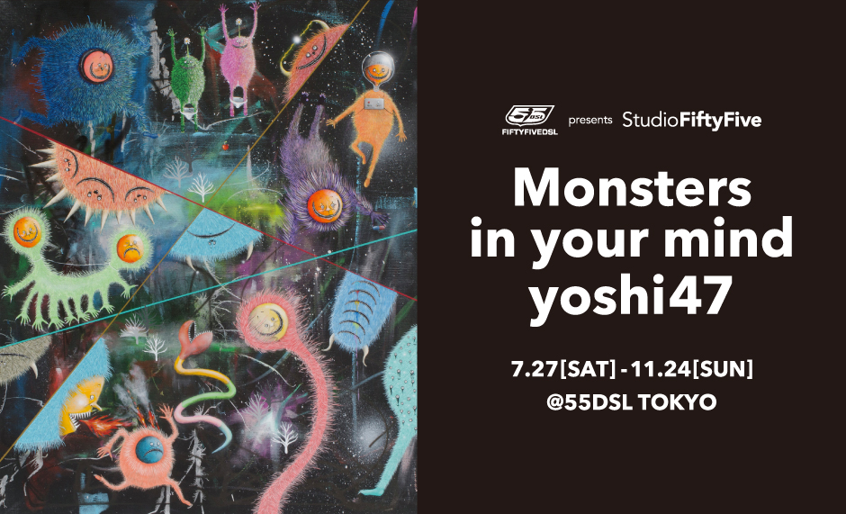 2005年、サンフランシスコにてバイクメッセンジャーとして1年間をそのコミュニティーの中で過ごし、2006年に日本へ帰国した後もバイクメッセンジャーとして活動。日米のバイクカルチャーの中で様々な経験をしてきたアーティスト、yoshi47の個展 “Monsters in your mind” が7月27日から55DSL TOKYOで開催される。